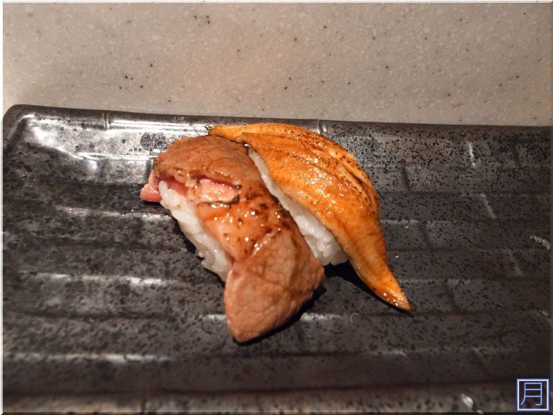▲ 炙燒牛肉、炙燒星鰻壽司,牛肉入口即化,油脂與牛肉香味在舌尖打轉,完美的與米飯結合,真的是完美之作。