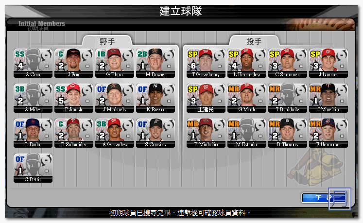 ▼ 接著就會秀出您初期隊伍中的球員有哪些人可以加入,都是現役的MLB球員唷。