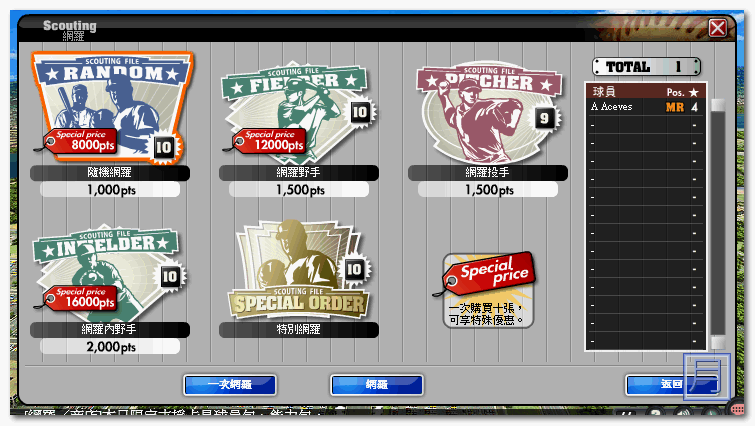 ▼ 在這裡您可以額外自行網羅球員,網羅的話需要花遊戲裡的金錢,一開始註冊會送,大家可以放心。