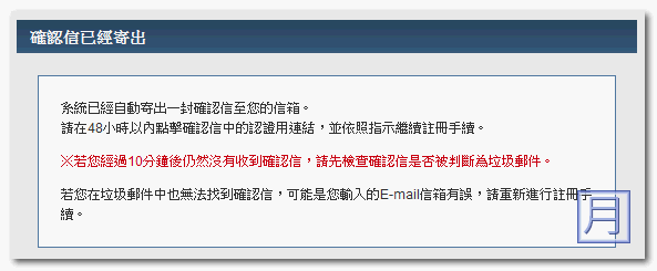 ▼ E-Mail 的認證信可能要比較久一點才收的到,所以請耐心等候。