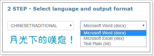 ▼ 此服務非常貼心,還提供我們轉檔成 Word、Excel 與 txt 的檔案,記得語系要選 CHINESETRADITIONAL (繁體中文) 唷。