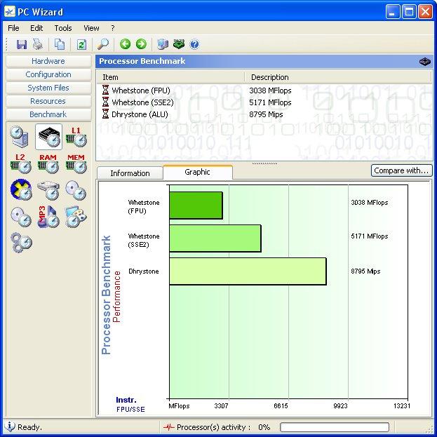 PC Wizard 是一款非常好用的硬體偵測軟體,它能將您目前電腦中的硬體型號完整的顯示出來,讓您可以徹底的了解您的電腦硬體,可以顯示的硬體有主機板、中央處理器、Video、IO Port、磁碟、印表機、隨插即用裝置、多媒體配備、網路、硬體衝突及電壓等等的相關資訊,而且還可以針對中央處理器、L1 快取、L2 快取、記憶體效能這些項目進行簡易的測試,對硬體玩家來說這款軟體是不可以錯過的。