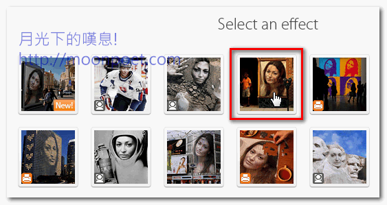 ▼ 製作流程也相當的簡單,進入 PhotoFunia 後會出現各種不同風格的合成素材,選一個您喜歡的素材。