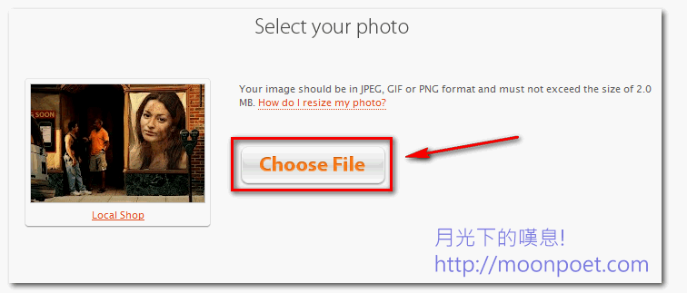 ▼ 接著請按下 Choose File 選擇您於電腦中的照片檔案。