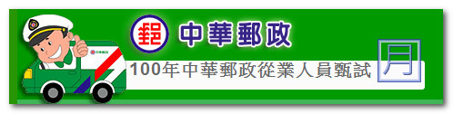 「中華郵政100年從業人員甄試」第一試筆試定於100年3月12日舉辮,報名期間自100年2月10日09:00至100年2月22日18:00止,一律採網路報名