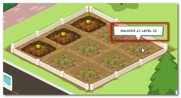 ▼ 農場系統中的農地共有九片,每一片都須靠升級取得,當您的等級達到16級時即可取得第一塊田,接著每升兩級便可取得下一塊田,九塊全部開發完成要到達32級。