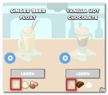 ▼ (Drink) 飲料新增漂浮生薑啤酒(新食材:生薑)與香草熱可可(新食材:香草)