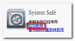 ▼ 如果您想啟動保護模式請在「System Safe」中選擇立刻啟用,請先將所有執行中的程式關閉。