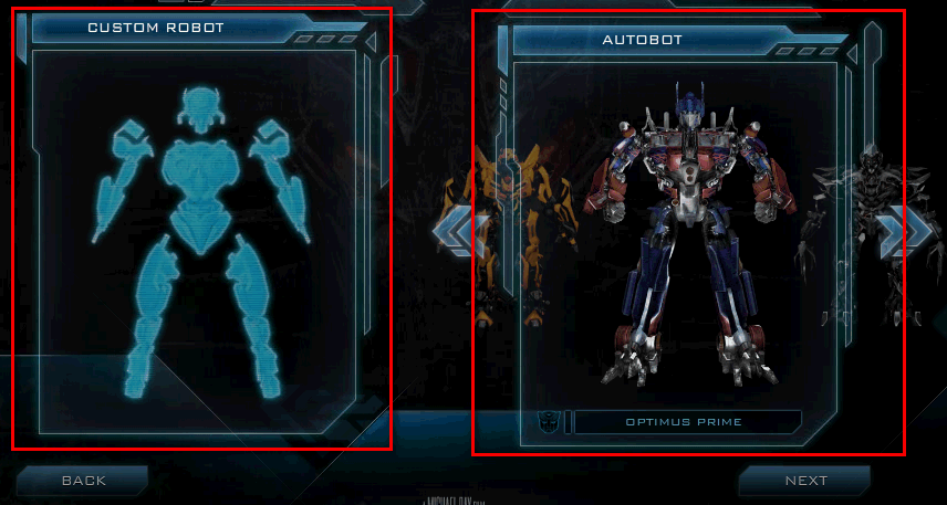 ▼ 第二步請選擇變形金剛的身體,左是自訂,右是選擇預設。