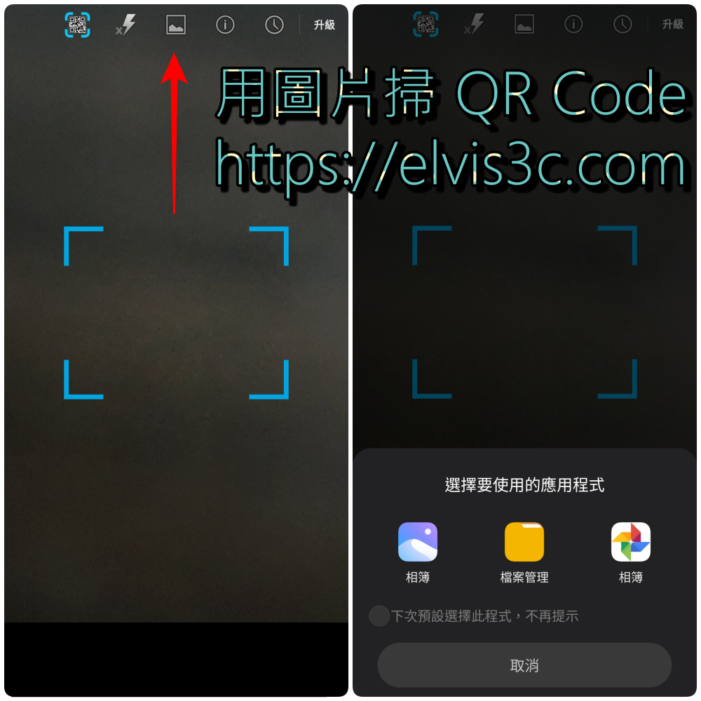 ▼ 安裝完成後請開啟此 QR Code APP 程式,接著我們只要點擊紅色箭頭指到的圖片功能,接著選擇我們要用來瀏覽圖片的APP。