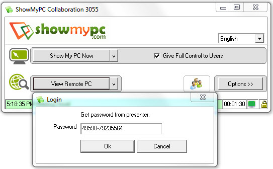 1.被控端將 Give Full Control to Users 打勾,並按下「ShowMyPC NOW」,將出現的密碼複製下來。