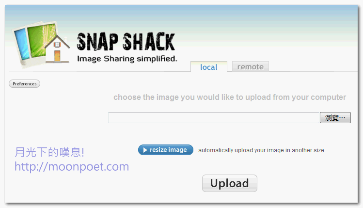 ▼ 這個服務提供兩種方式上傳圖檔,Local 是從您的電腦上傳,而 remote 是從圖片網址直接上傳。