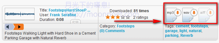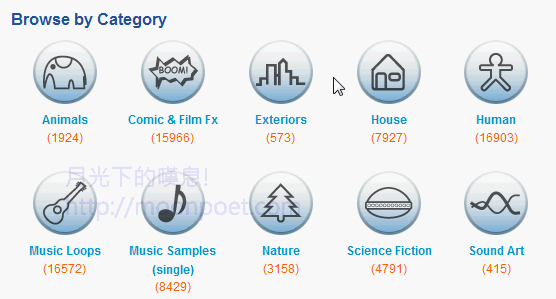 Soundsnap 這是一個相當酷的資源分享網站,它收藏了10萬枚以上的音效素材,而且類別從動物、卡漫與人類相關等等數十種不同的音效素材庫,這對有在剪輯電影或是製作遊戲等等的用途來說是非常方便與省錢的,不過這個網站下載是需要註冊的。