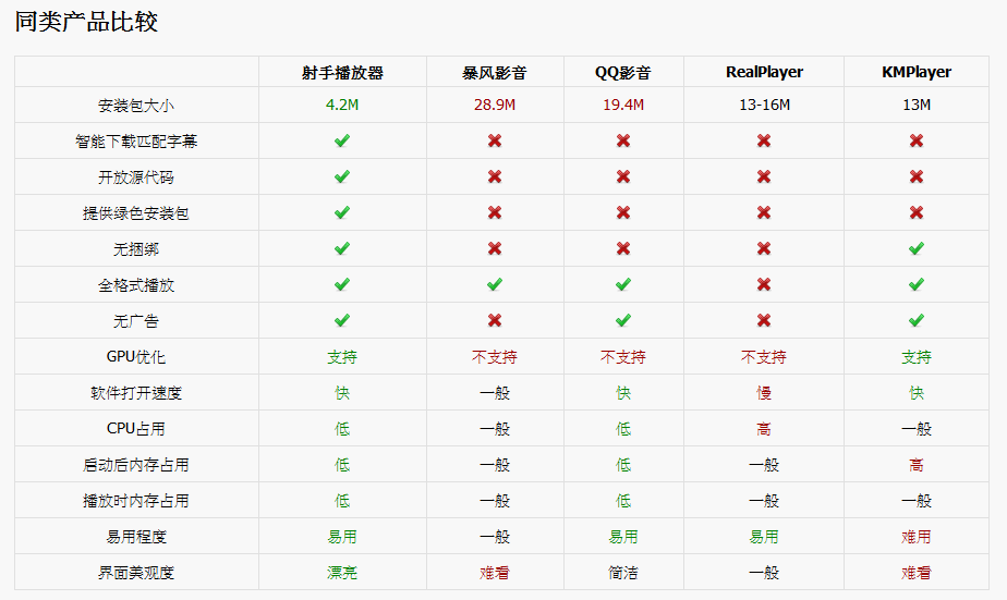 * 經過多位專業熱心用戶的意見和設計,射手播放器界面秉承簡潔、時尚,功能完整而又不影響一般使用。功能按鈕新手拈來,揮之即去