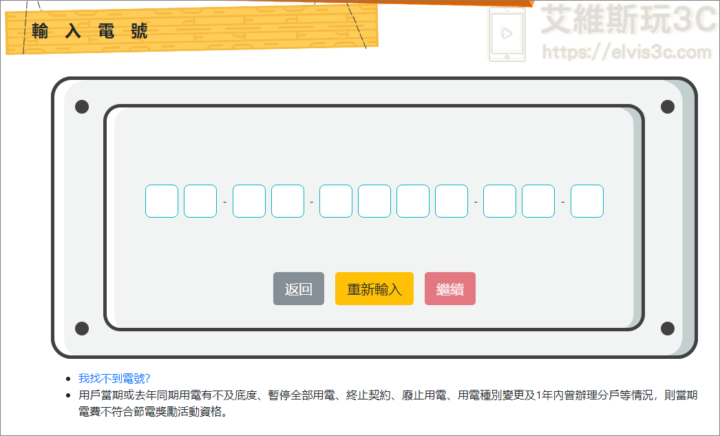▼ 接著再申請節電獎勵金的頁面中輸入您的電號,請一定要在107/4/30前登錄完成,這樣才能拿到整年度的節電獎勵金唷。