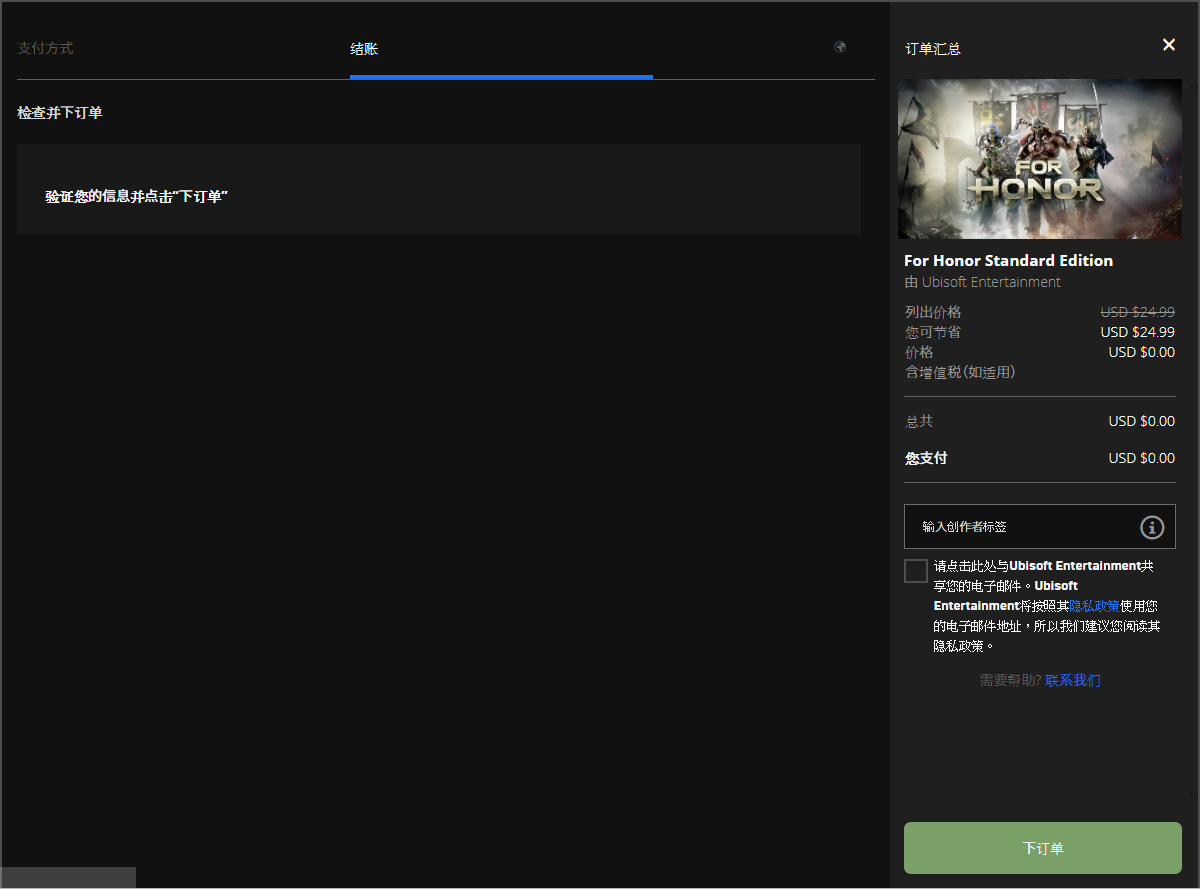 ▼ 在正確登入後,就會跑出結帳的畫面,點擊右下角的下訂單即可進行完成遊戲取得。