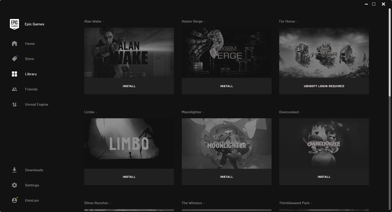 ▼ 接著在介面中點繫Library的頁籤,就能看見剛剛的遊戲已經在遊戲庫中了,想玩的話就點擊遊戲圖片下方的INSTALL進行安裝吧。