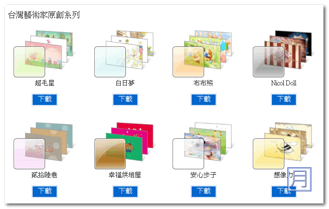 首頁免費軟體視窗美化Win7主題下載 台灣藝術家原創系列 Win7主題下載 台灣藝術家原創系列 免費軟體, 視窗美化 8 則留言 Windows 7 的主題下載網站好像又多出這幾種新的佈景主題供大家下載,這些是台灣藝術家們的原創作品,每個都是非常可愛又有趣的卡通插畫主題,總共有八個主題,喜歡插畫風格佈景的朋友可別錯過唷。 Windows 7 主題包下載:官方網站 您也可以點擊下方的圖片進行下載唷。 標籤:Theme, win7 主題, 佈景主題, 免費軟體, 原創, 台灣藝術家 8 則留言 dunyoung 2010 年 09 月 15 日 感謝分享,下載去 回覆 Elvis 2010 年 09 月 16 日 Dear dunyoung, 嗯,希望您會喜歡。 回覆 huangjun 2010 年 09 月 13 日 这些主题好卡通啊~ 回覆 Elvis 2010 年 09 月 16 日 Dear huangjun, 嗯啊,我還蠻喜歡的^^ 回覆 npcome 2010 年 09 月 12 日 非常漂亮,簡體中文的系統能安裝嗎? 回覆 Elvis 2010 年 09 月 16 日 Dear npcome, 可以,佈景沒有語系限制。 回覆 蘋果米 2010 年 09 月 11 日 哇,好可愛喲 我沒有藝術天份 對會畫插畫作品的人 都覺得好羨慕、佩服喲 可愛!可愛! 回覆 Elvis 2010 年 09 月 16 日 Dear 蘋果米, 希望您會喜歡囉^^ 回覆 發表迴響取消回覆