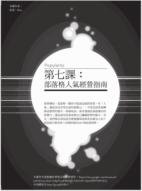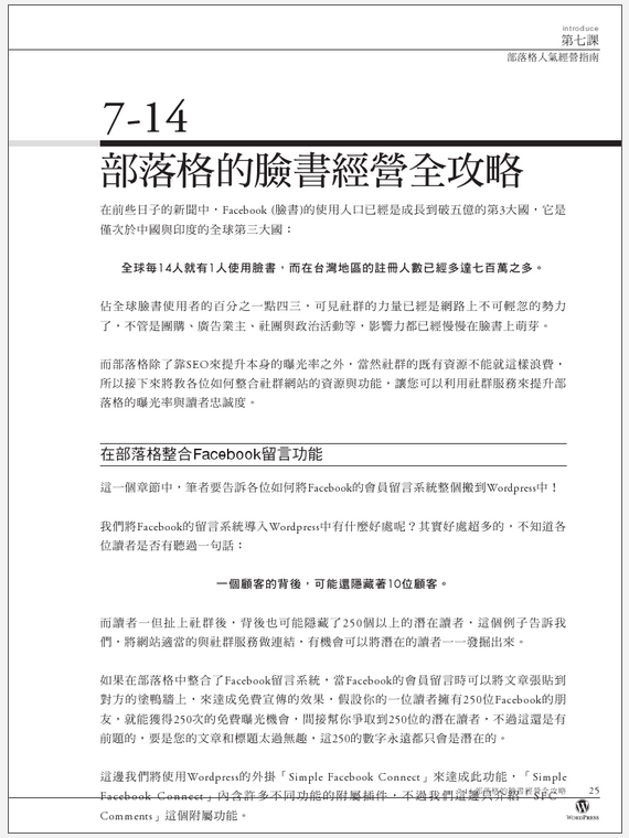 本人這次是與高登老爺協力撰寫第七章節,也就是SEO與社群功能結合的部份,這次的作者共邀請到了十一位重量級的知名部落客(除了敝人比較沒名氣之外)一同協力著作,每位作者幾乎可以說是拿出畢生所學,把所有的功力都發揮在這本新書中,由淺至深,讓您從一位門外漢能快速進階成為Wordpress的部落客,而且這次還搭配了優惠主機的免費活動,讓您可以跟著書本同步操作,邊看邊作加深印象,也能快速提升自已的功力,這麼實用的工具書對於想學Wordpress的朋友們我想是找不到第二本更適合的書了。
